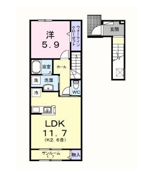 1LDK( 洋室5.9畳/LDK11.7畳 ) |