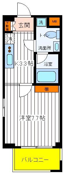 | 築年月 | 2008年1月 | 間取り | 1K( 洋室7畳/K3.3畳 ) | 専有面積 | 24.53m2 |