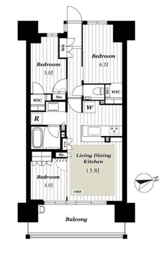| 築年月 | 2024年8月 | 間取り | 3LDK( 洋室4畳/洋室5畳/洋室6.2畳/LDK13.8畳 ) | 専有面積 | 65.5m2 |