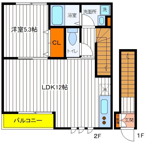 | 種別 / 構造 | アパート / 木造 | 主要採光面 | 東 | 所在階 / 階数 | 2階 / 2階 |