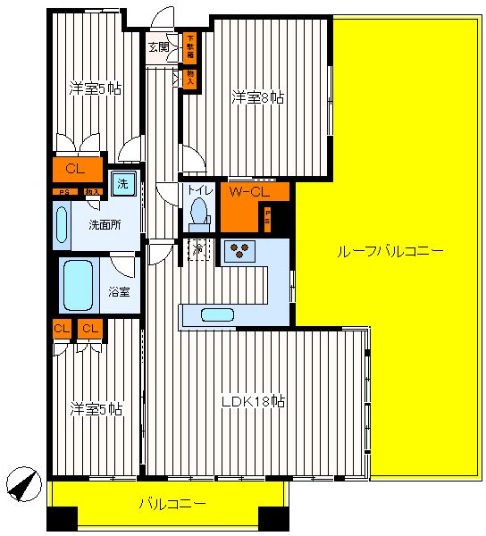 | 築年月 | 2016年1月 | 間取り | 3LDK( 洋室8畳/洋室5畳/洋室5畳/LDK18畳 ) | 専有面積 | 78.66m2 |