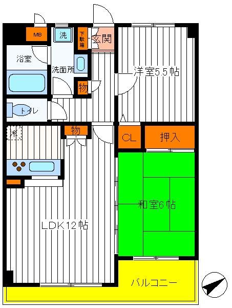 | 築年月 | 2001年11月 | 間取り | 2LDK( 洋室5.5畳/和室6畳/LDK12畳 ) | 専有面積 | 53.13m2 |