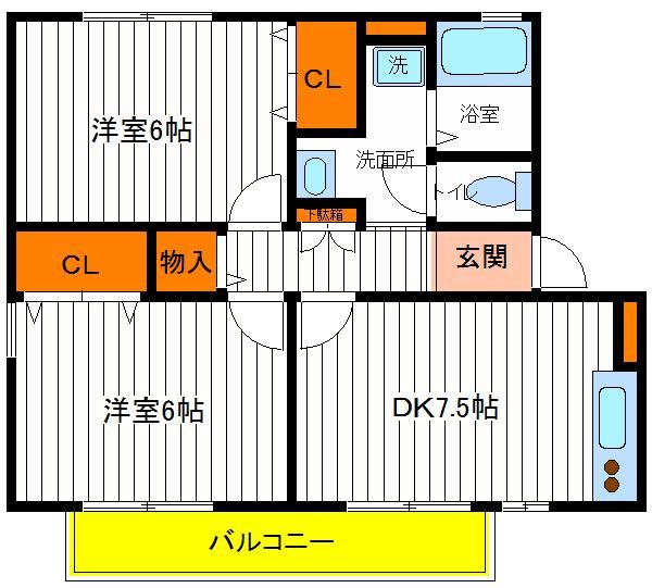 | 築年月 | 2000年9月 | 間取り | 2DK( 洋室6畳/洋室6畳/DK7.5畳 ) | 専有面積 | 47.96m2 |