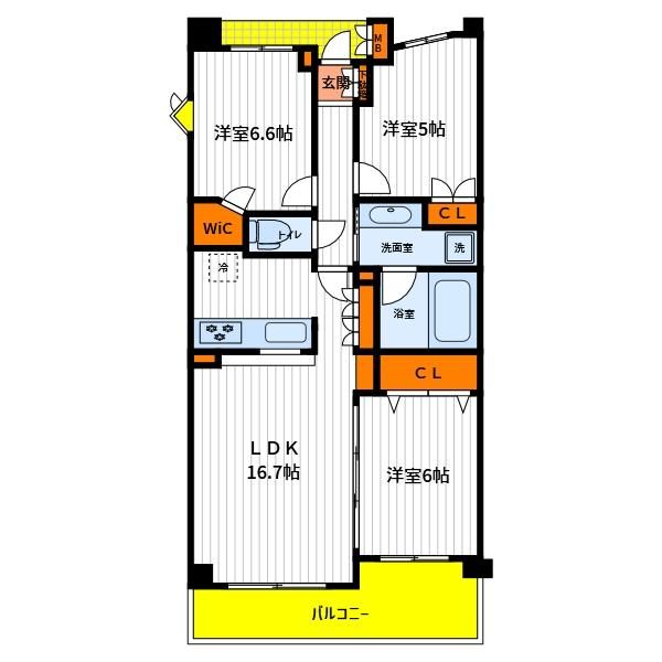 | 築年月 | 2007年9月 | 間取り | 3LDK( 洋室6.6畳/洋室5畳/洋室6畳/LDK16.7畳 ) | 専有面積 | 75.64m2 |