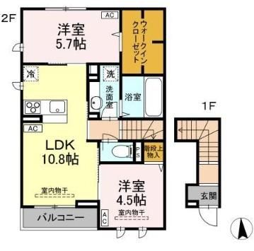 新築築の2階建てのアパートで、お部屋は2階建ての2階部分です。