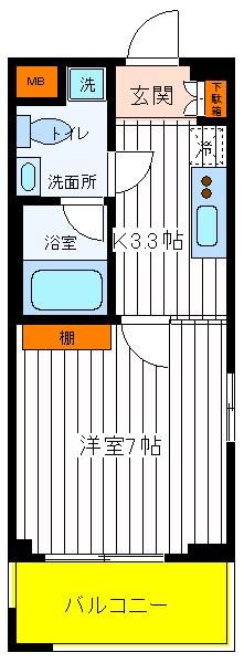 | 築年月 | 2008年1月 | 間取り | 1K( 洋室7畳/K3.3畳 ) | 専有面積 | 24.53m2 |
