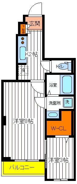 | 築年月 | 2020年3月 | 間取り | 2K( 洋室8畳/洋室3畳/K2.2畳 ) | 専有面積 | 34.01m2 |