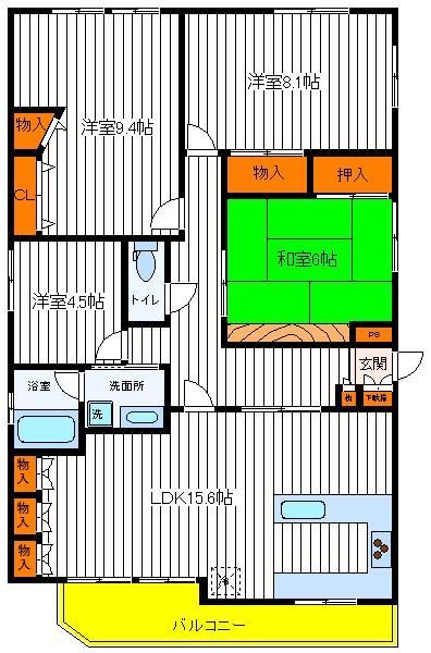 | 築年月 | 1994年11月 | 間取り | 4LDK( 洋室9.4畳/洋室8.1畳/洋室4.5畳/和室6畳/LDK15.6畳 ) | 専有面積 | 90.07m2 |