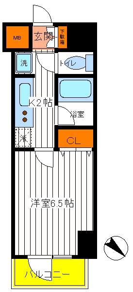 | 築年月 | 2016年4月 | 間取り | 1K( 洋室6.5畳/K2畳 ) | 専有面積 | 21.51m2 |