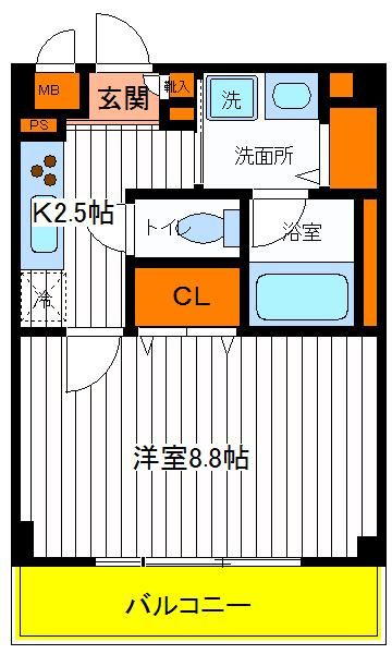 | 築年月 | 2019年3月 | 間取り | 1K( 洋室8.8畳/K2.5畳 ) | 専有面積 | 30.02m2 |