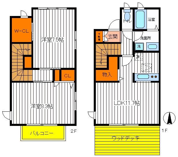 【についてスタッフからのイチオシポイント!】★ウッドデッキ付き、2LDKテラスハウス!全室フローリング!★◆各部屋6帖以上でゆとりある広さ!ウォークインクローゼット付き!◆