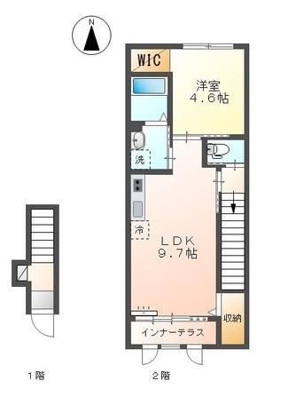 1LDK( 洋室4.6畳/LDK9.7畳 ) |