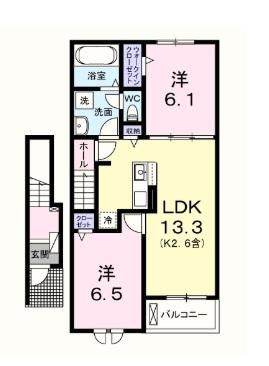 2LDK( 洋室6.1畳/洋室6.5畳/LDK13.3畳 ) |