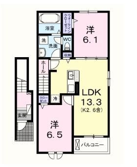 2LDK( 洋室6.1畳/洋室6.5畳/LDK13.3畳 ) |