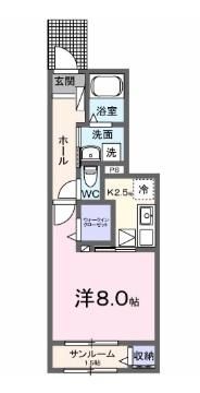 築年月 新築  間取り 1K( 洋室8畳/K2.5畳 ) 専有面積 33.2m2