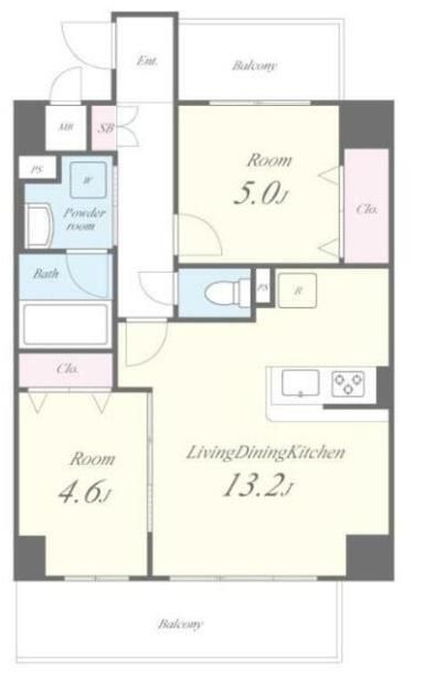 2LDK( 洋室5畳/洋室4.6畳/LDK13.2畳 ) |