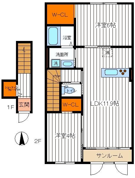 | 種別 / 構造 | アパート / 木造 | 主要採光面 | 南 | 所在階 / 階数 | 2階 / 2階 |