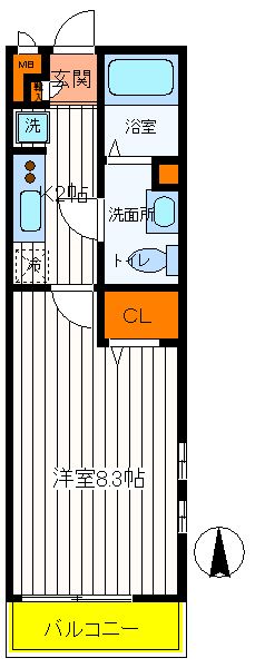 | 築年月 | 2013年3月 | 間取り | 1K( 洋室8.3畳/K2畳 ) | 専有面積 | 24.84m2 |