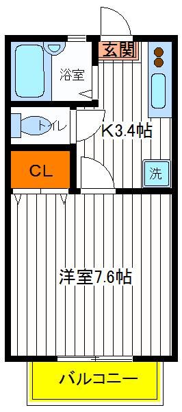 | 築年月 | 2000年11月 | 間取り | 1K( 洋室7.6畳/K3.4畳 ) | 専有面積 | 23.08m2 |
