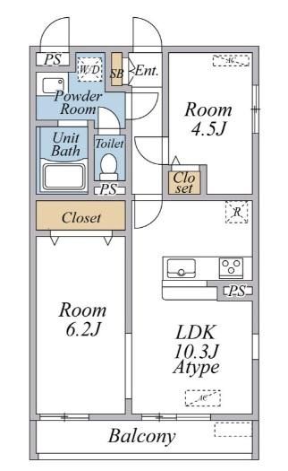 - 2LDK(洋室6.2畳/洋室4.5畳/LDK10.3畳) 49.68m2