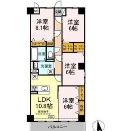 4LDK( 洋室6畳/洋室6畳/洋室6.1畳/洋室6畳/LDK10.8畳 ) |