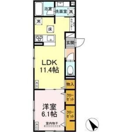 1LDK( 洋室6.1畳/LDK11.4畳 ) |