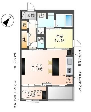 1LDK( 洋室4畳/LDK11.8畳 ) |