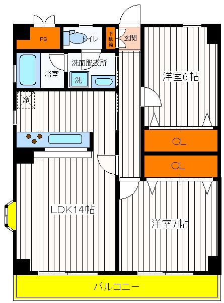 | 築年月 | 1988年6月 | 間取り | 2LDK( 洋室6畳/洋室6畳/LDK10.3畳 ) | 専有面積 | 63.32m2 |