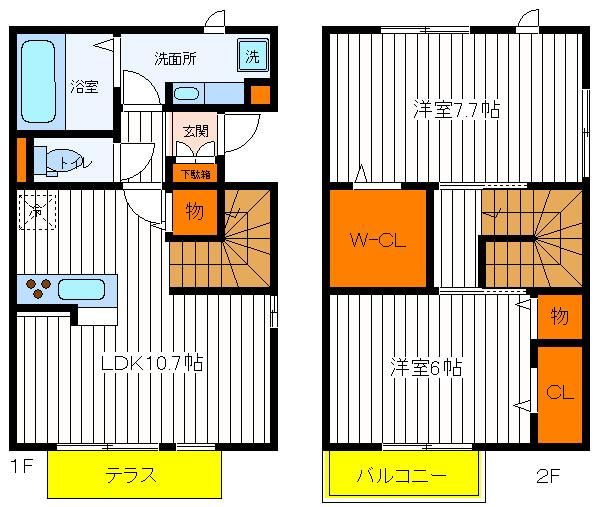 東中神の2LDK賃貸テラスハウス