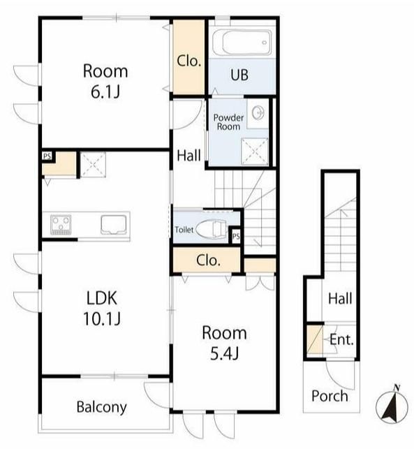 - 2LDK(洋室6.1畳/洋室5.4畳/LDK10.1畳) 56.72m2