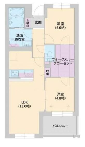 | 築年月 | 2017年5月 | 間取り | 2LDK( 洋室5畳/洋室4.8畳/LDK13畳 ) | 専有面積 | 55m2 |