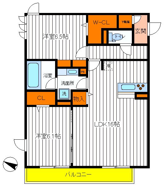 | 築年月 | 2016年4月 | 間取り | 2LDK( 洋室6.5畳/洋室6.1畳/LDK16畳 ) | 専有面積 | 73.91m2 |