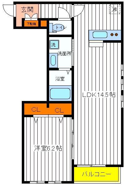 | 築年月 | 2024年2月 | 間取り | 1LDK( 洋室6.2畳/LDK14.5畳 ) | 専有面積 | 44.65m2 |