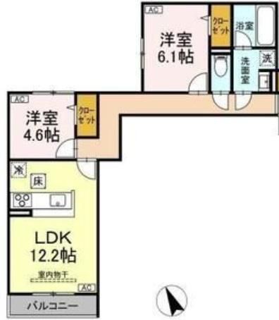 2LDK( 洋室4.6畳/洋室6.1畳/LDK12.2畳 ) |