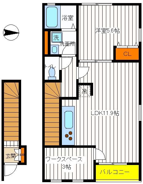 | 種別 / 構造 | アパート / 木造 | 主要採光面 | 東 | 所在階 / 階数 | 2階 / 2階 |