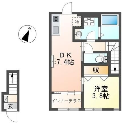 • 1DK(洋室3.8畳/DK7.4畳) 34.69m2
