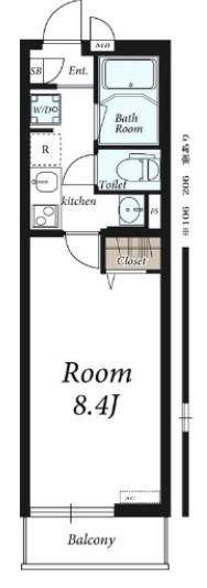 | 築年月 | 2011年9月 | 間取り | 1K( 洋室8.4畳/K1.6畳 ) | 専有面積 | 24.84m2 |