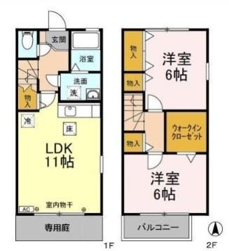 | 種別 / 構造 | テラスハウス / 軽量鉄骨造 | 主要採光面 | 南 | 所在階 / 階数 | 2階 / 2階 |
