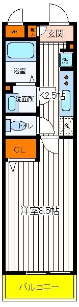 | 築年月 | 2018年11月 | 間取り | 1K( 洋室8.5畳/K2.5畳 ) | 専有面積 | 26.08m2 |