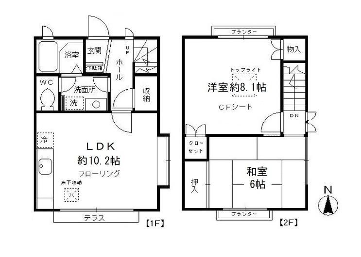 | 種別 / 構造 | テラスハウス / 木造 | 主要採光面 | 南 | 所在階 / 階数 | 2階 / 2階 |