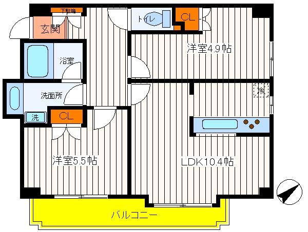 | 築年月 | 1998年3月 | 間取り | 2LDK( 洋室5.5畳/洋室4.9畳/LDK10.4畳 ) | 専有面積 | 50.29m2 |