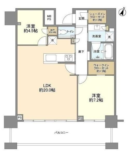 | 築年月 | 2016年6月 | 間取り | 2LDK( 洋室7.2畳/洋室4.5畳/LDK20畳 ) | 専有面積 | 71.66m2 |