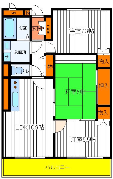| 築年月 | 1996年3月 | 間取り | 3LDK( 洋室7.3畳/洋室5.5畳/和室6畳/LDK10.9畳 ) | 専有面積 | 65.17m2 |
